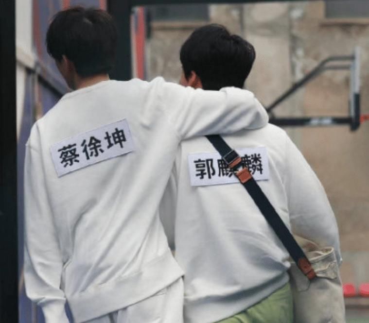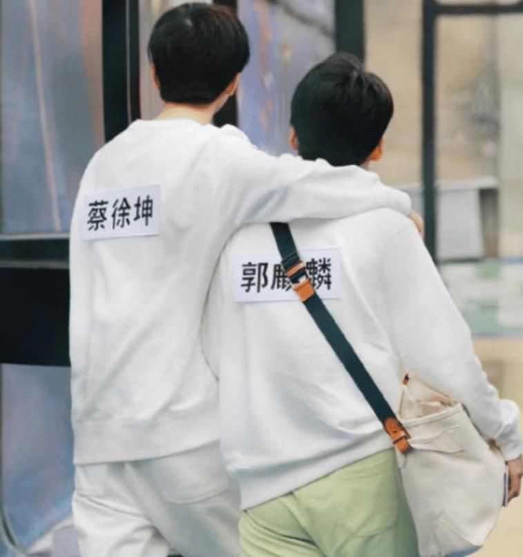 好了,废话不多说,我们来看看网上传出的两人合体路透!在下面这一张图中,可以看到蔡徐坤跟郭麒麟两人在节目录制的时候就总是一起走,他们俩在走路的时候还非常亲昵地勾肩搭背。