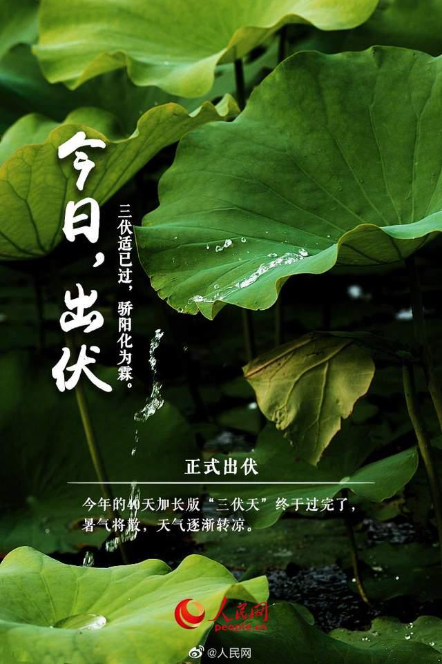 人民网讯 从7月16日到8月24日,长达40天的加长版“三伏天”终于结束,今天正式出伏。伏天过后,暑热将渐渐退散,天气将逐步凉爽。气候的变化也将给人们的起居作息、饮食习惯带来改变。